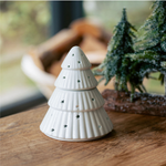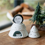 Ceramic wax warmer shaped as a Christmas Tree. Light an unscented tea light in the base, then remove the lid to melt your SÓ SOY wax melt.